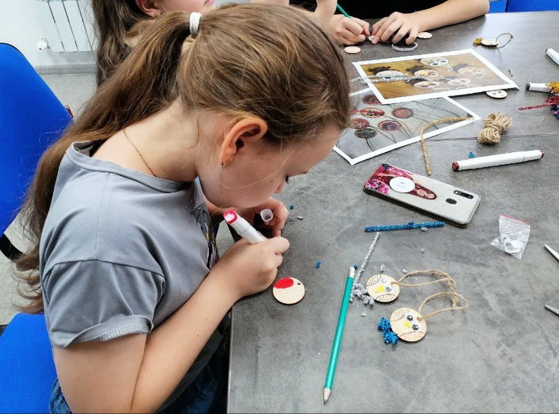 Работать с таким материалом, как дерево, очень интересно, но непросто, задача была изготовить сову из деревянного медальона. На мастер-классе царила атмосфера умиротворения и вдохновения. Участники с энтузиазмом украшали свои поделки красками, блестками и другими декоративными элементами.
