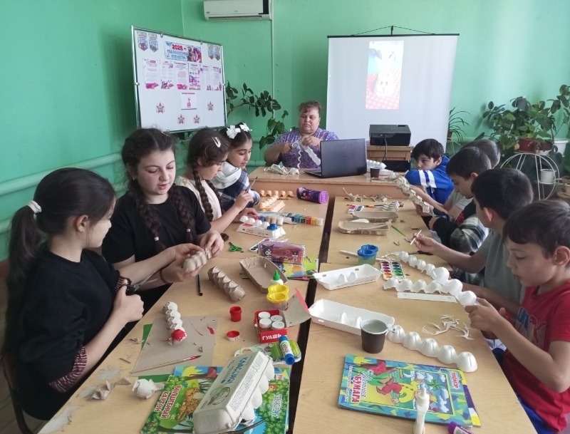 На этом занятии подовцы использовали бывшие в употреблении картонные и пенопластовые лотки для куриных яиц. Как оказалось, это отличный материал для творчества. И если научиться правильно его использовать, то можно сделать самые разные, при этом весьма оригинальные поделки. Ребята создали уникальные изделия, превратив ненужный мусор в забавных насекомых и животных – в гусениц, петухов, кур и зайчиков. Мастер-класс по изготовлению поделок из яичных лотков прошёл в рамках проекта «Нескучное лето».
