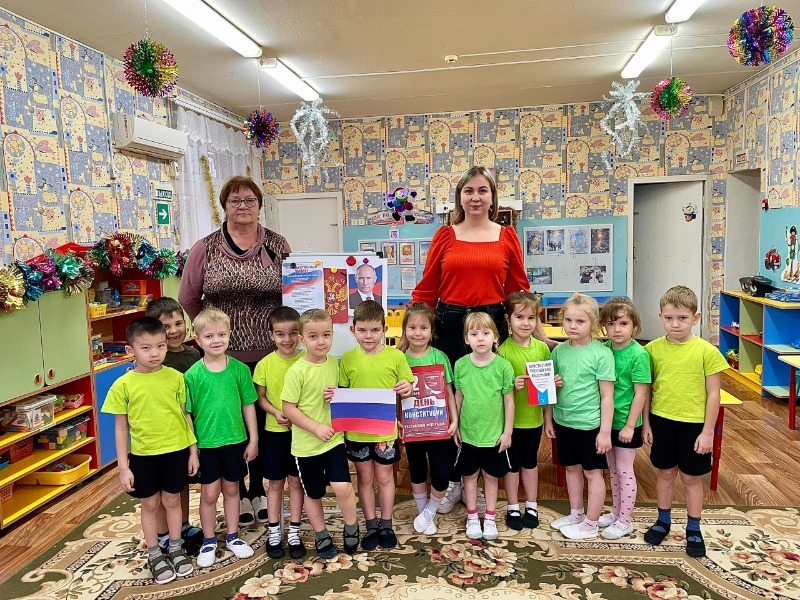 Культорганизатор центра культуры с. Чёрный Яр Т.В. Уткина вместе с воспитателем А.И. Тимофеевой провела в старшей группе «Затейники» детского сада «Улыбка» познавательно-развлекательную программу, посвящённую Дню Конституции РФ. Татьяна Владимировна рассказала ребятам об основном законе нашей страны, они познакомила их с важнейшими понятиями – такими, как «закон», «порядок», «право», дети вспомнили государственную символику: флаг, герб, гимн. Затем культорганизатор предложила детям сыграть в тематические игры: «Собери флаг», «Плохие и хорошие поступки», исполнили гимн РФ.