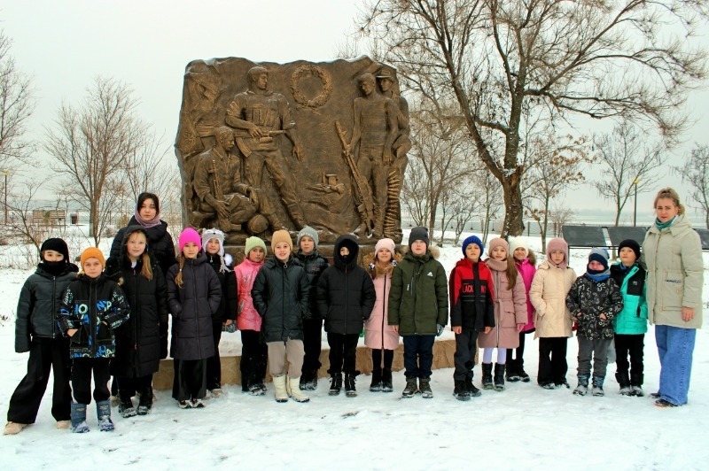 После беседы детей пригласили на экскурсии — ребята побывали у местных волонтёров из группы «Мы вместе!», которые плетут маскировочные сети для фронта, а затем прошли к сельскому мемориалу «Быть воином, жить вечно».