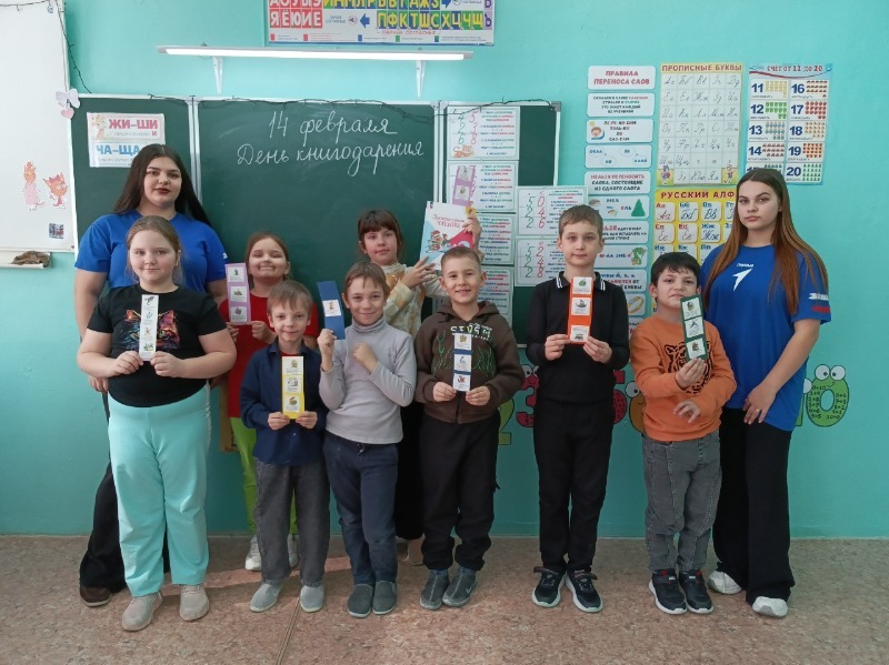 «Занятие к Международному дню книгодарения открыли вступительным словом Екатерина и Ульяна, девушки рассказали малышам историю происхождения праздника, подчеркнув значение чтения и традиций дарения книг», — говорится в сообщении школьного СМИ.