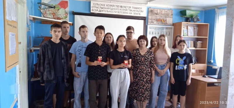 На мероприятии атмосфера была благоприятной и спокойной, потому что многие ребята пропустили все рассказанное через свои детские сердца. Час памяти и мужества прошёл также и в Черноярском губернском колледже, дети вместе с преподавателями оформили книжную выставку «И снова в памяти война», на которой были выставлены для ознакомления документы и награды участника ВОВ В.Я. Торопыгина. В конце мероприятия студенты зажгли символичную «Свечу памяти».