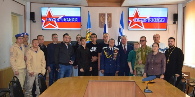В зале собрались призывники со всего района, которым в ближайшее время предстоит отправиться на службу в ряды Вооруженных сил. Это – Крутиков Виталий (с. Черный Яр), Пантелеев Эльдар (с. Ступино), Дегтярев Антон (с. Солёное Займище), Гостищев Владимир (с. Солёное Займище), Осипов Юрий (с. Солодники), Ефремов Анзор (с. Зубовка).