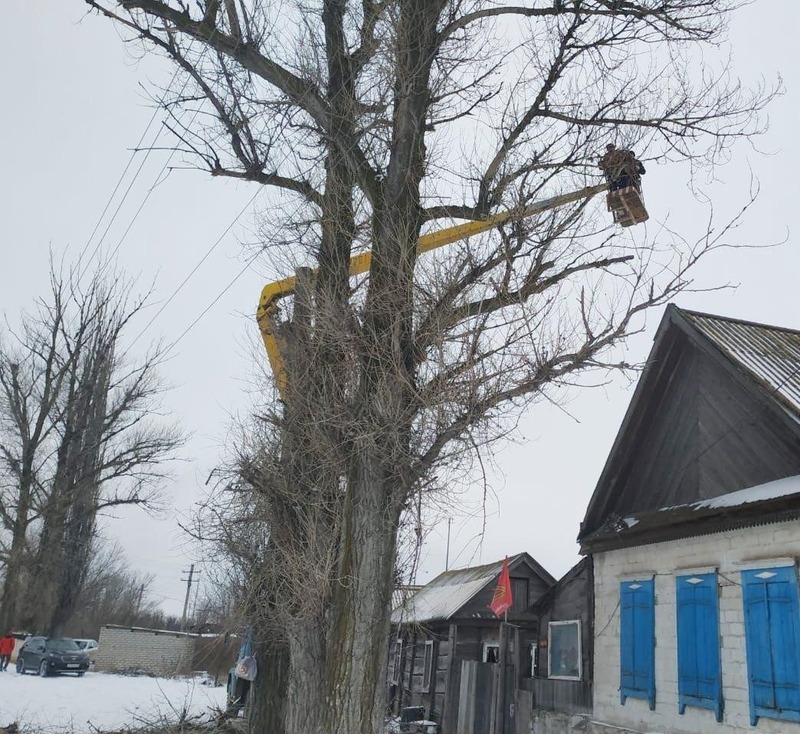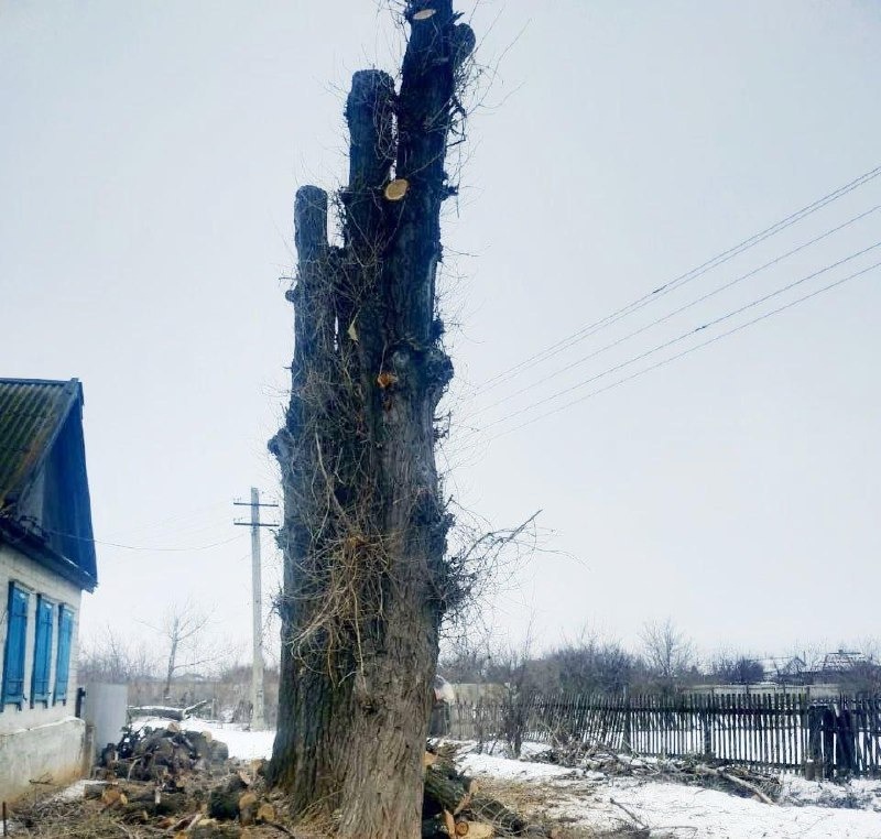 В конце прошлого года в администрацию Черноярского района обратилась мама мобилизованного бойца с просьбой помочь спилить высоко разросшиеся перед их домом деревья, представляющие опасность для здания и самих жильцов.