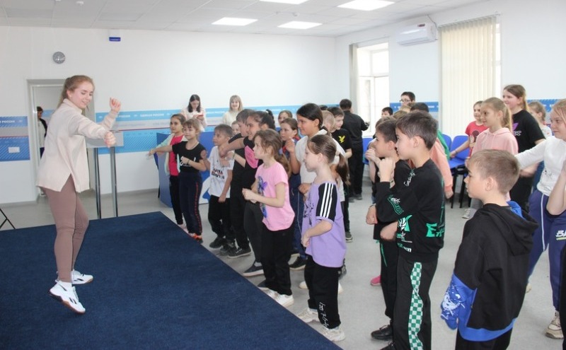 Ярко прошёл спортивный флешмоб «Здорово! Спортивно! Креативно», его организовала фитнес-тренер Дина Фошина. Учащиеся под веселую, ритмичную музыку с удовольствием сделали простые и доступные всем спортивные упражнения для поддержания спортивной формы. В финале программы сотрудники штаба от имени его руководителя, депутата Думы Астраханской области Валерия Александровича Ашихмина угостили всех участников встречи полезными фруктами – яблоками, пожелали ребятам крепкого здоровья, хорошего настроения, огромного заряда бодрости и позитива.