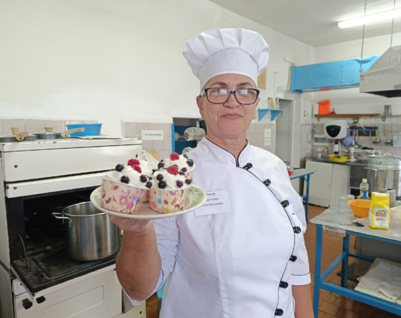 «Занятие по азам поварского мастерства провела наш повар-кондитер Елена Ивановна Коротенко», - пояснили организаторы профориентационной акции.