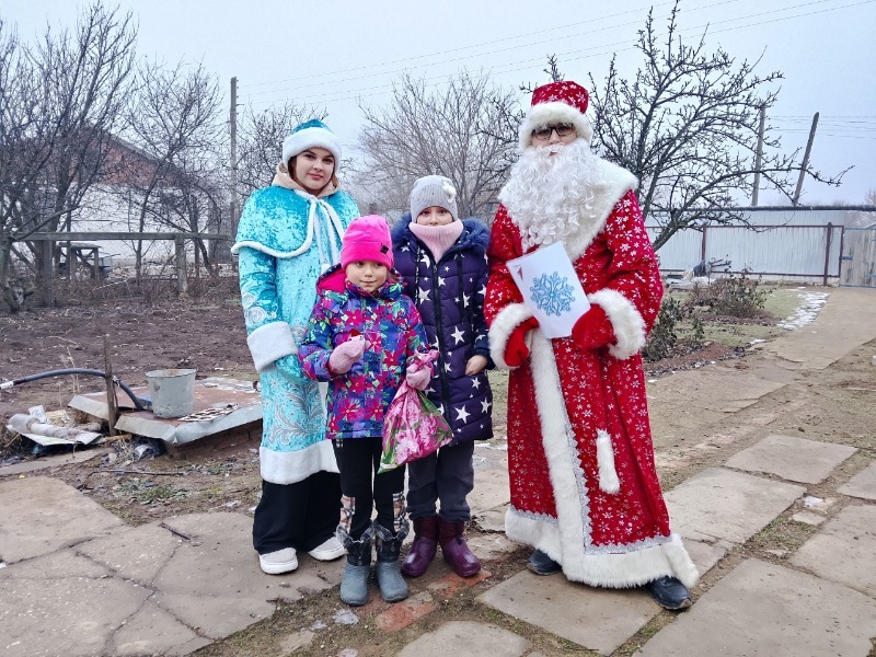 «К нашим односельчанкам Анастасии Поповой и Ане Ворониной в гости пришёл сам Дедушка Мороз (Сергей Иванов), его сопровождала, как и положено, его внучка Снегурочка (Екатерина Потопахина). Они прочитали девочкам поздравления, вручили сладкие подарки от Первых и новогоднюю елочную игрушку – Гномика. Восторгу девочек не было предела!» – говорится в сообщении школьного СМИ.