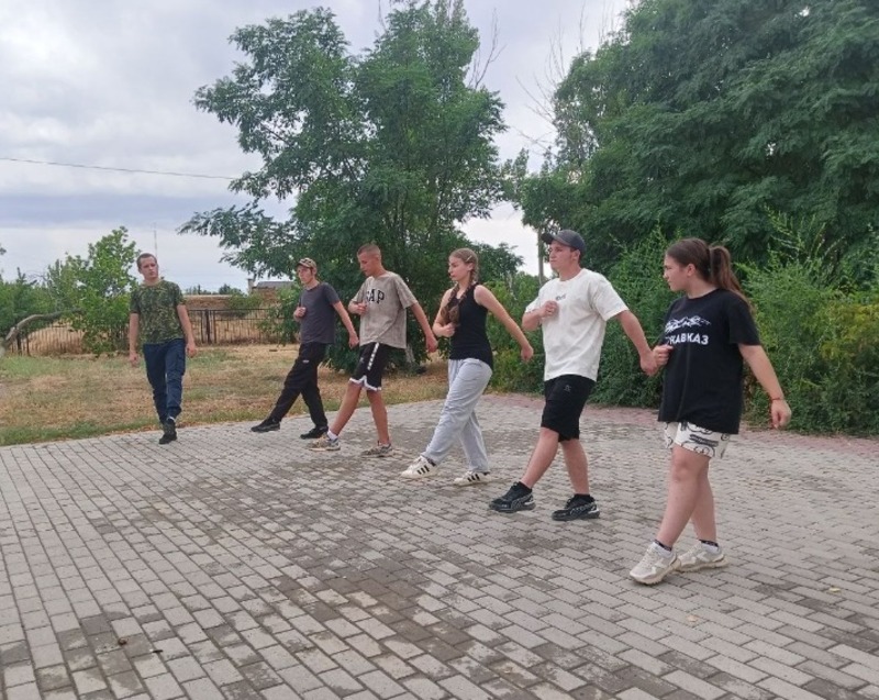 Далее все вместе тренировались ходить строем — это важно, чтобы быть дружной командой. Ребята тренировали выход из строя, выход к командиру и т. д. После разминки и бега девушки качали пресс, а парни подтягивались на турнике, чтобы быть сильными и здоровыми. В конце занятия ребята учились разбирать и собирать автомат.